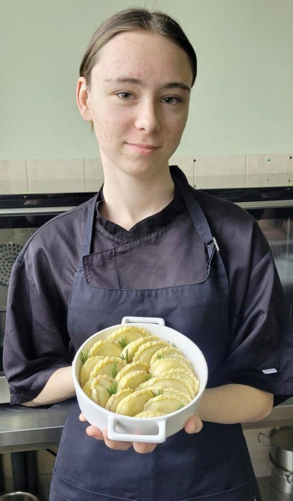 Marijampolės profesinio rengimo centro virėjo profesijos mokinė Saulė Litvaitytė pernai nacionalinio meistriškumo konkurse laimėjo 3-ąją vietą kulinarinio meno rungtyje. Nenuostabu, kad kulinarinis menas merginai labai artimas: tik pažiūrėkite, kaip ji sulanksto virtinukus! O lankstymo būdų, sako Saulė, yra labai įvairių. Kaip ir galimų virtinukų įdarų – su įvairiomis uogomis, varške, virtomis daržovėmis ar mėsa.