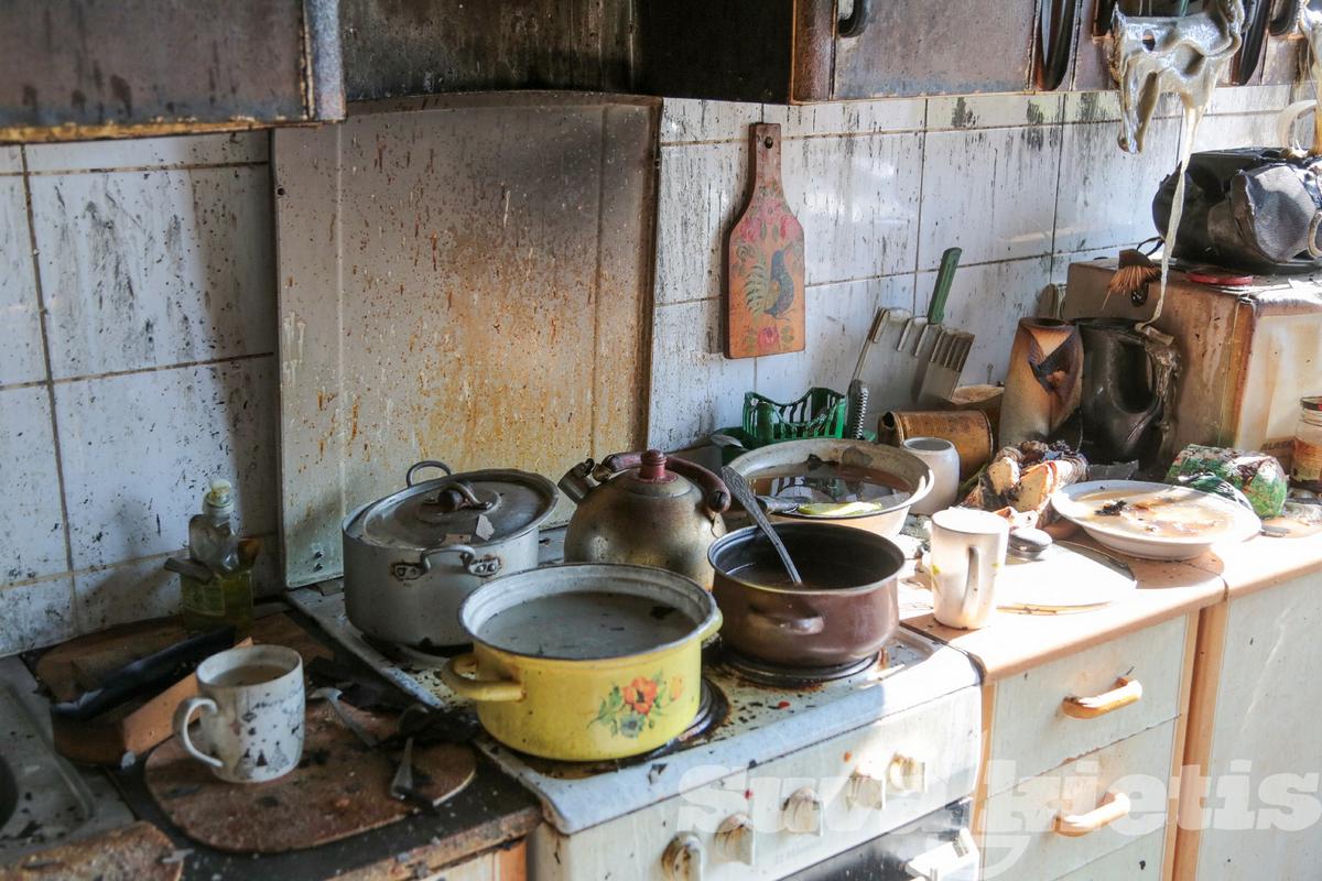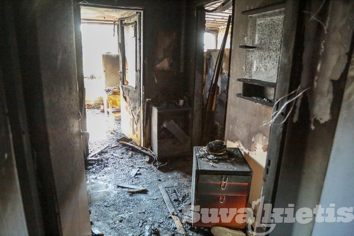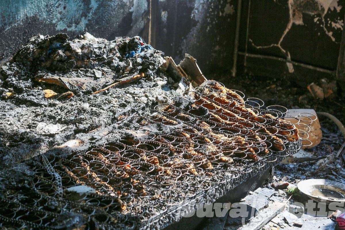 Butas, kuriame kilo gaisras, visas išdegęs. Ypač kambarys, kuriame buvo gaisro židinys. Sudegė baldai, namų apyvokos daiktai, išliko tik lovos metalinis karkasas.