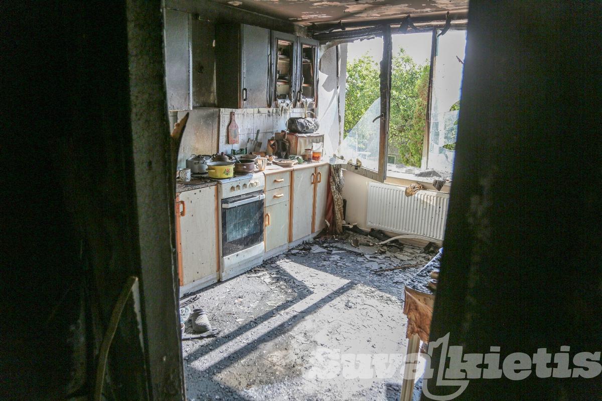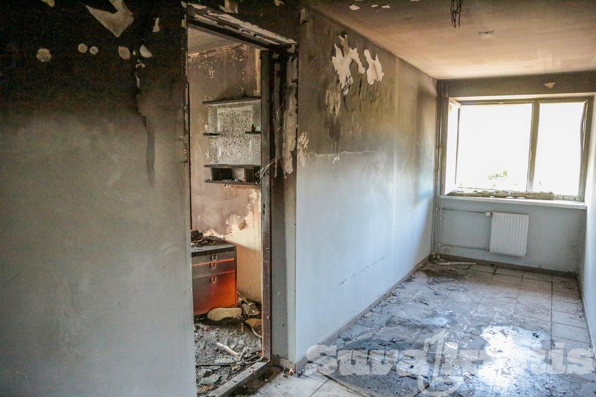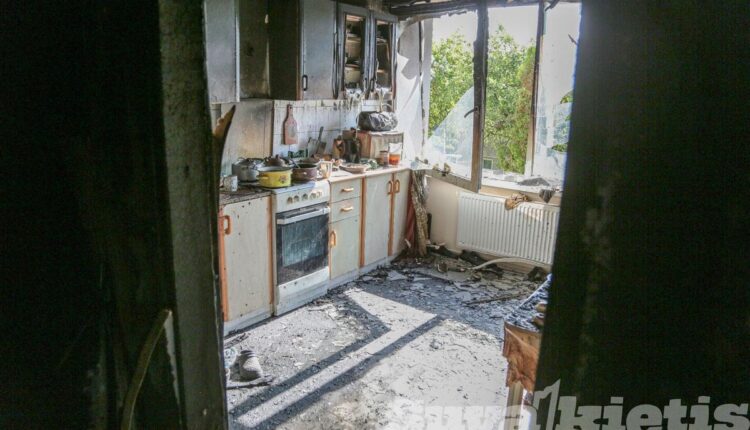 Socialinių būstų name kilus gaisrui smarkiai apdegė vyras, nuniokotos patalpos