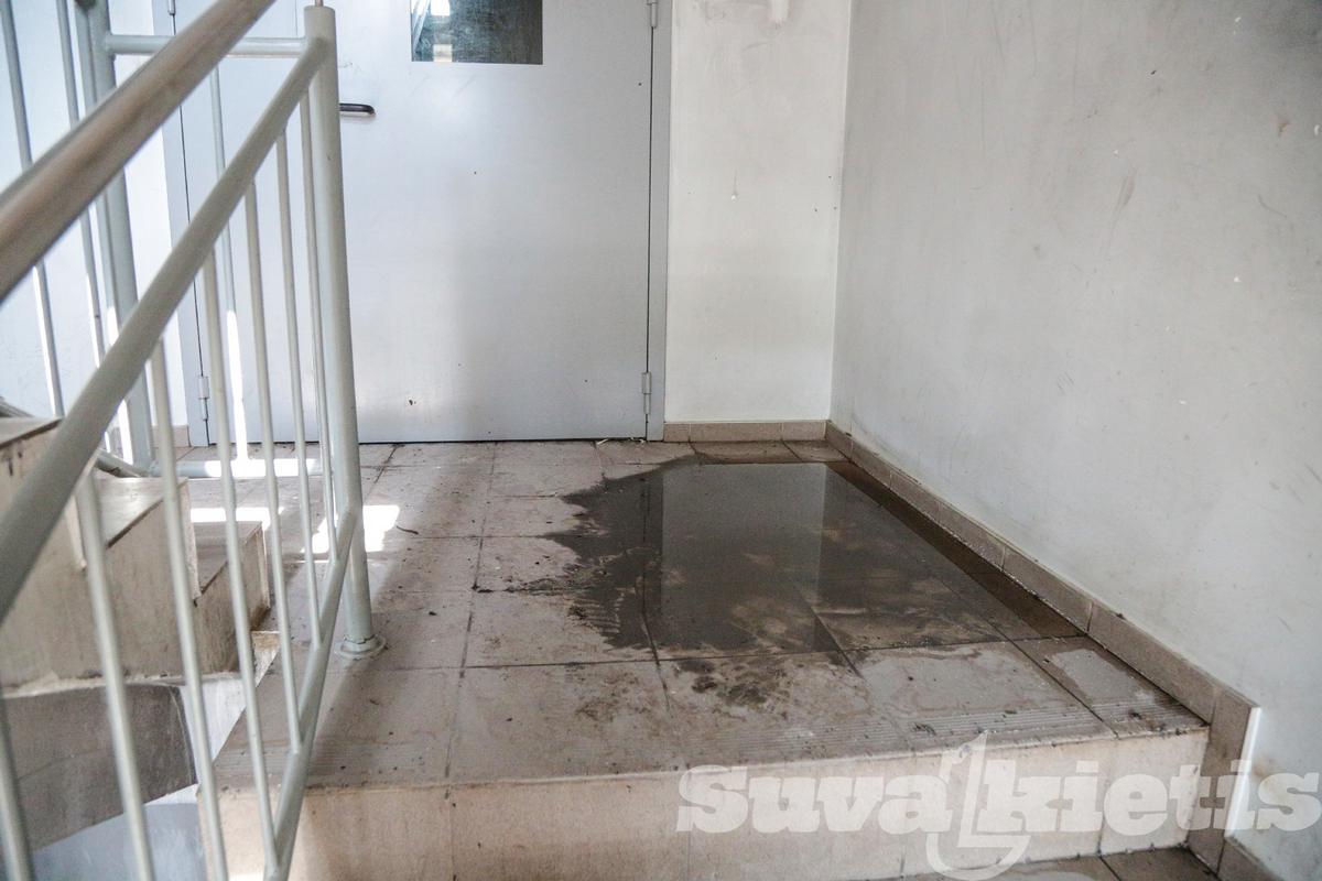 Sulietas butas pirmame aukšte, esantis po degusiu butu. Jame gyvena žmogus su negalia. Jo bute dar ir šiandien telkšo vanduo, varva nuo lubų ir sienų. Kilimai, takai šlapi, visur tvyro degėsių tvaikas. Žmogus sakė nežinantis, kaip jam reikės susitvarkyti namus. Kiek turėjo skudurų, takų, tiek tiesė ant žemės, kad sugertų vandenį.