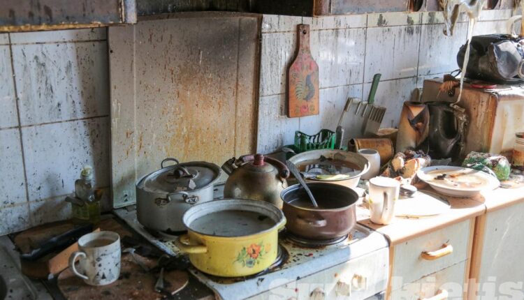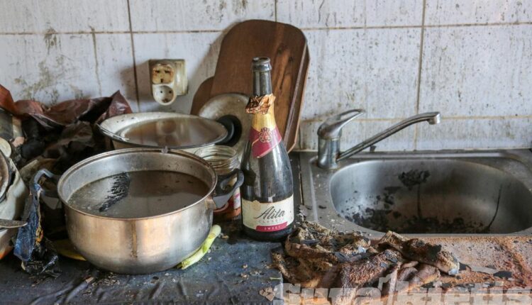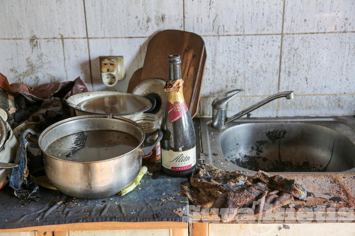 Namo gyventojai pasakoja, kad vyras visą savaitę šventė gimtadienį. Virtuvėje lėkštėse likę maisto, matosi tuščias šampano butelis, neišgertas alus.