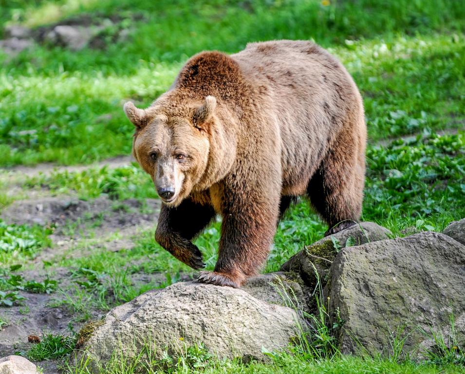 Jei gyvūnas elgiasi agresyviai ar artėja, stenkitės atrodyti didesni – pakelkite rankas, susiburkite į grupę, tačiau nešūkaukite ir nedarykite staigių judesių, nes tai gali jį išgąsdinti ar supykdyti. Svarbu nepersekioti gyvūno, nesivyti jo automobiliu ir neskatinti jo tolimesnio judėjimo link žmonių. Apie pastebėtą mešką būtina nedelsiant pranešti skubios pagalbos numeriu 112.