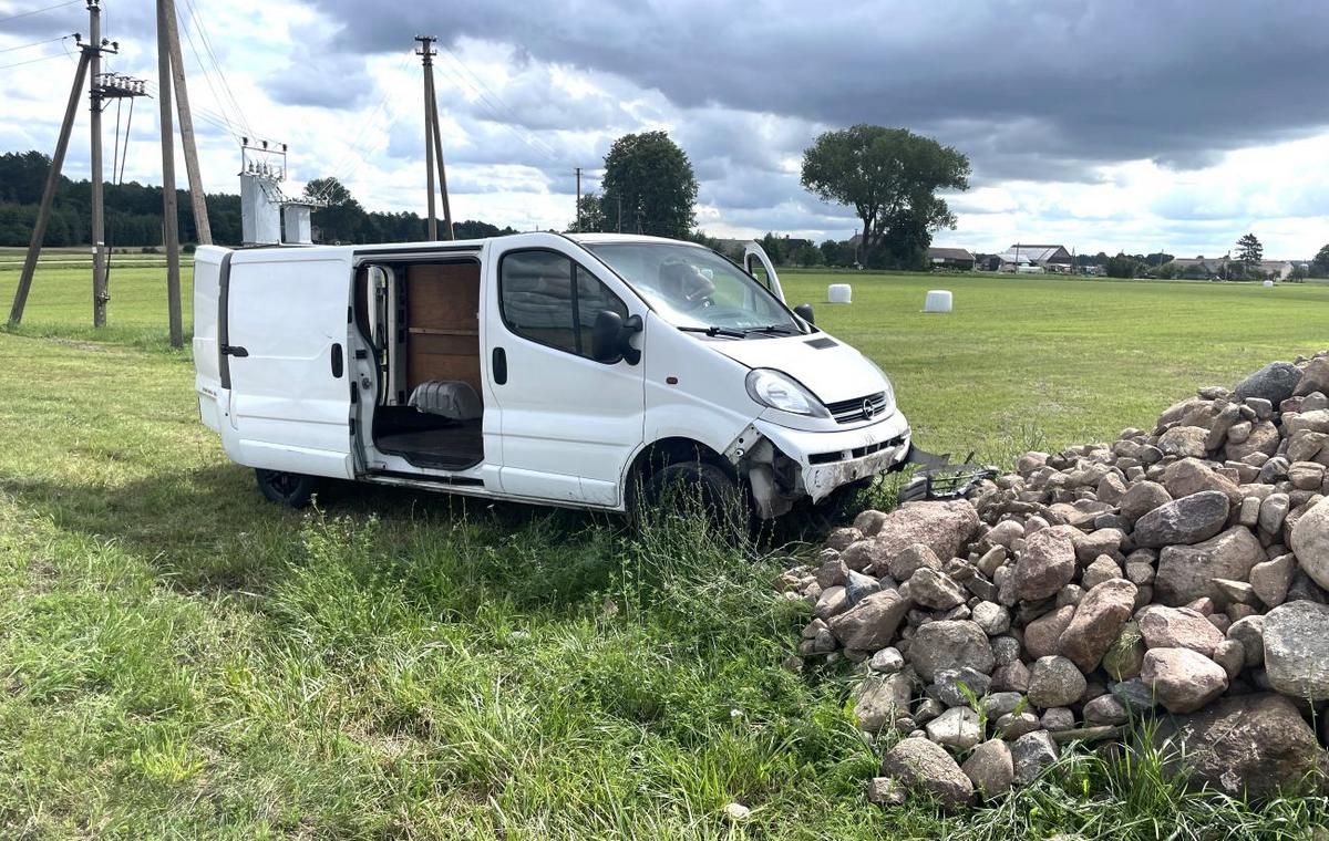 (auto) Nelegalius migrantus gabenęs ukrainietis, matyt, užmigo prie vairo. Mikroautobusą sustabdė pievoje esanti akmenų krūva.