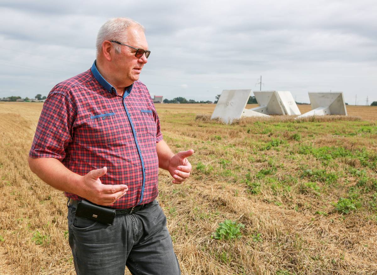Kuktų žemės ūkio bendrovės vadovas Antanas Jasiulevičius sako, kad konstrukcijas elektros linijai atnaujinti gabenti buvo galima dabar, kai derlius nuimtas. Ričardo PASILIAUSKO nuotrauka