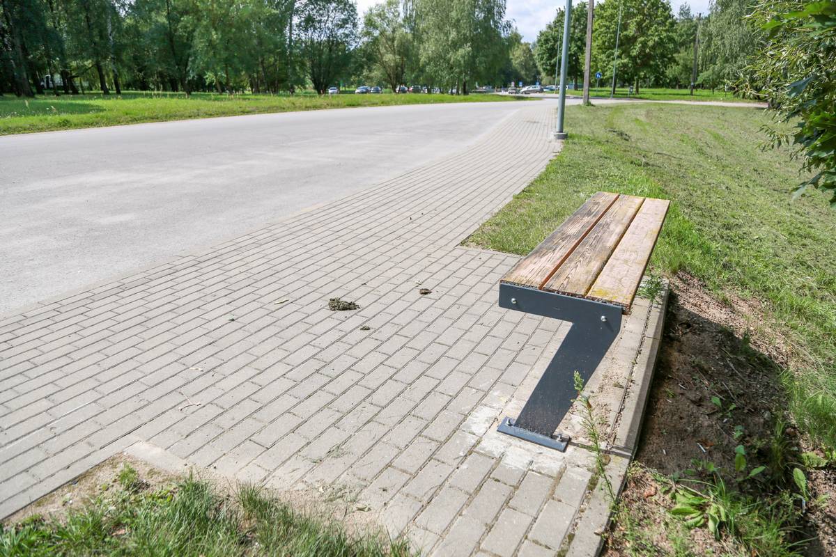 Suoliukas, kur keleiviai galėtų laukti autobuso, kol kas tuščias. Ričardo PASILIAUSKO nuotrauka