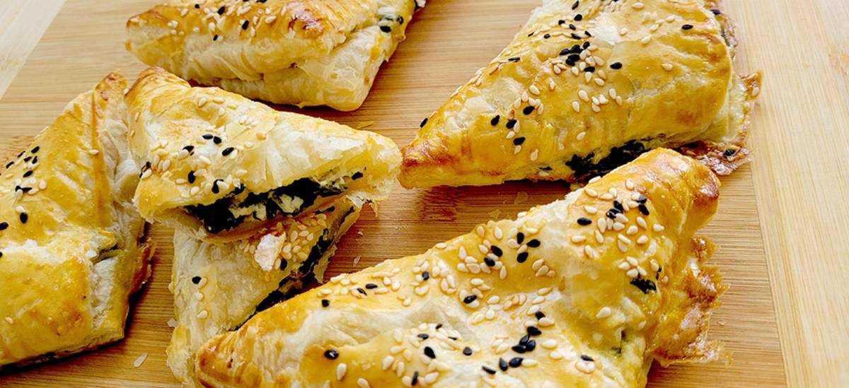 Pamatę nuotraukoje šiuos pūstažandžius pyragėlius, nenumokime ranka: „Čia ne mano žanras, tokios tešlos niekada negaminau ir negaminsiu“. Išties – jiems reikalinga sluoksniuota bemielė tešla. Bet yra geroji naujiena: puikiai tinka ir pirktinė bemielė tešla!