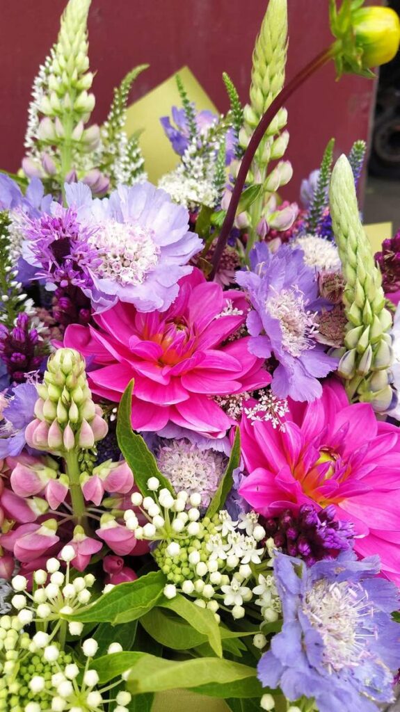 Prieš komponuodama puokštes Jurgita paklausia, kam gėlės bus dovanojamos, kokios spalvos tam žmogui patinka. „Nors dažniausiai klientai leidžia improvizuoti man pačiai. Kai laukas žydi nuo baltos iki burgundiškos spalvos, o atspalviai vieni su kitais susiję, tai automatiškai ir renki tą puokštę.“