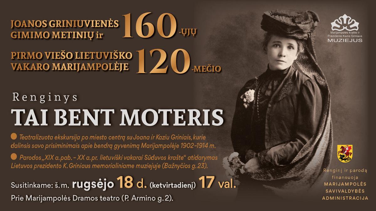 Šiemet švenčiame dvigubą sukaktį: Joanos Griniuvienės 160-ąsias gimimo metines ir pirmo viešo lietuviško vakaro Marijampolėje 120- metį!