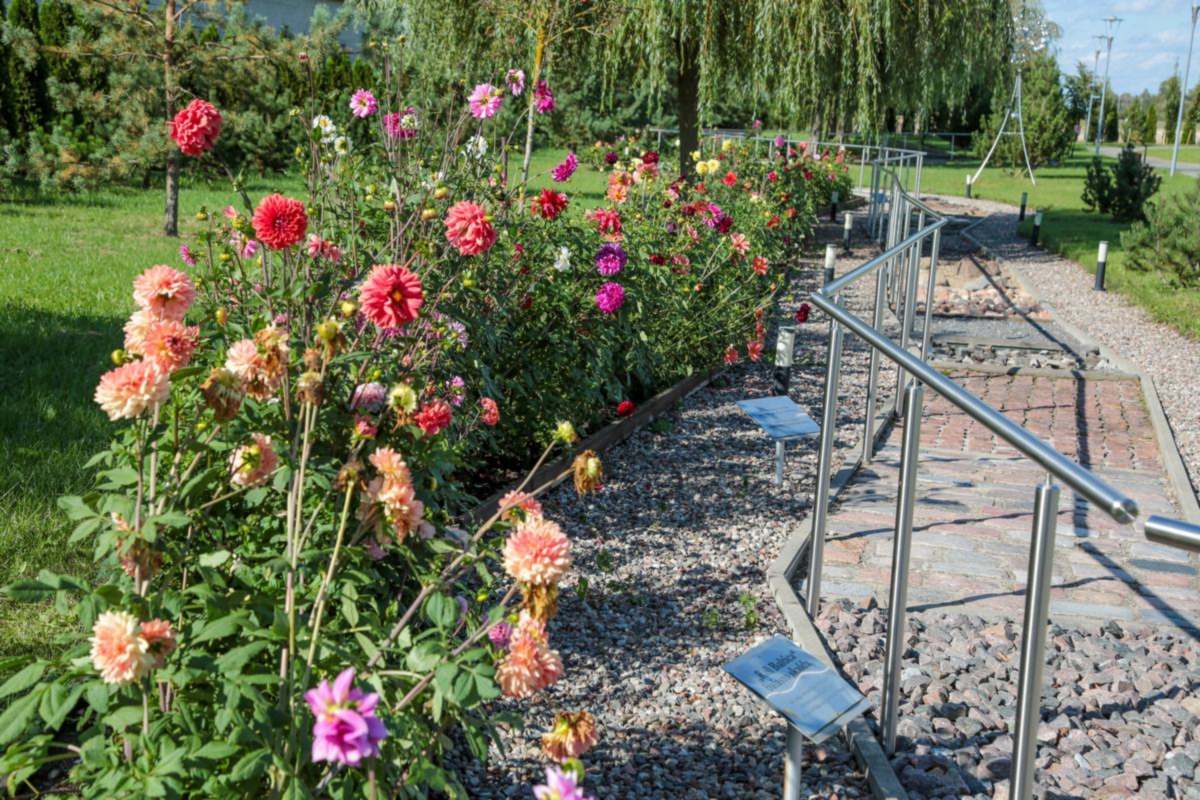 Dekoratyviniai, kaktusiniai, pomponiniai, karpyti, spygliniai… Įvairių žiedų ir žiedlapių formų, spalvų, atspalvių. Prie kiekvieno krūmo – etiketės: vienos į žemę įsmeigtos, kitos prie stiebo pritvirtintos.
