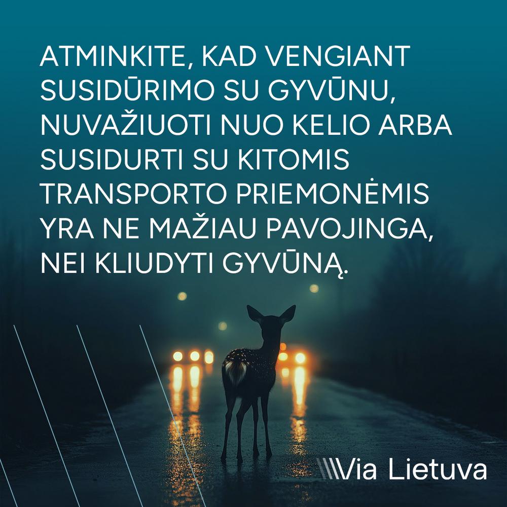 „Lietuvos keliuose kasmet įvyksta nemažai eismo įvykių, susijusių su laukinių gyvūnų išbėgimu į kelią, ypač prietemoje ar tamsiuoju paros metu. Vertiname rizikas, diegiame inžinerines apsaugos nuo gyvūnų priemones, tačiau visiškai išvengti laukinių gyvūnų patekimo į kelią – neįmanoma. Todėl būtina nuolat informuoti eismo dalyvius, priimti jiems, apie galimus pavojus kelyje. Atsakingas eismo dalyvių elgesys kelyje, patogi ir kiek galima saugesnė kelių infrastruktūra – du būtini veiksliai, užtikrinantys saugias keliones mūsų visų keliones“, – teigia „Via Lietuva“ generalinis direktorius Martynas Gedaminskas.