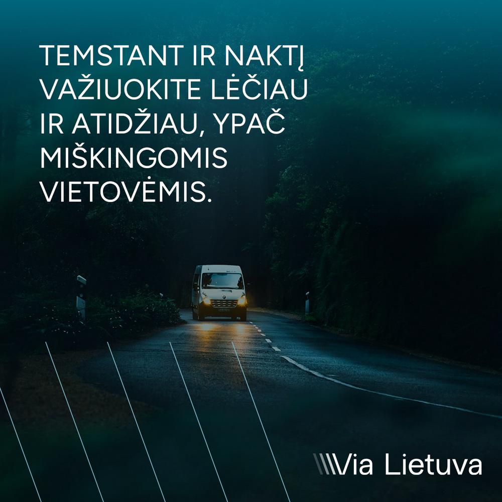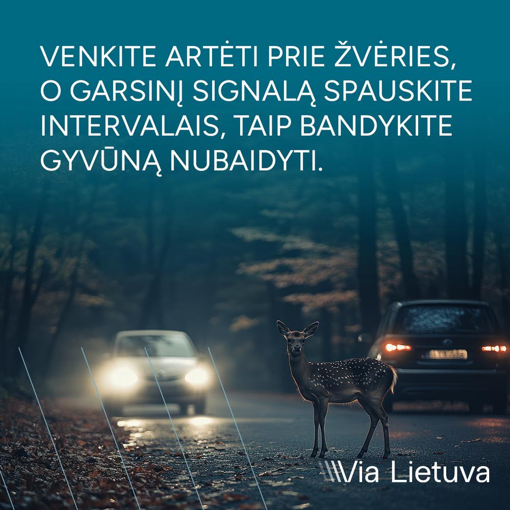 „Susidūrimai su laukiniais gyvūnais – dažna nelaimė keliuose, kurios įmanoma išvengti vairuojant atsakingai. Todėl kviečiu vairuotojus būti ypač atidžiais miškingose vietovėse ir sutemus. Lėtinkime greitį, stebėkime kelią ir prisiminkime – saugumas keliuose prasideda nuo mūsų pačių sprendimų. Kartais pakanka kelių sekundžių atidumo, kad išvengtume skaudžių padarinių ir apsaugotume ne tik savo, bet ir kitų gyvybes“, – sako susisiekimo ministras Juras Taminskas.