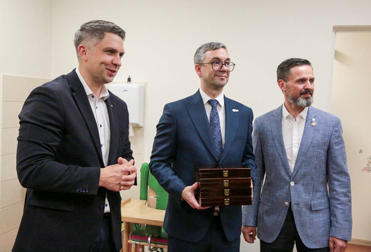 „Rotary“ klubo narys Martynas Mykolaitis, Marijampolės ligoninės direktorius Mantas Čėsna, „Rotary“ klubo prezidentas Andrius Papečkys dėkojo visiems geradariams, prisidėjusiems, kad projektas būtų įgyvendintas. Ričardo PASILIAUSKO nuotrauka