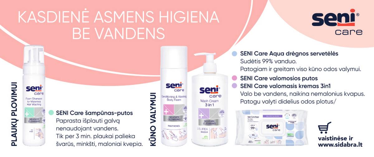 Vienas patikimiausių sprendimų šioje srityje – „SENI Care“ linijos gaminiai. Jie leidžia švelniai, bet veiksmingai rūpintis oda, pašalina nešvarumus ir suteikia gaivumo pojūtį net be vandens. Šios priemonės palengvina kasdienę slaugą, padeda išvengti odos problemų ir išlaiko žmogaus orumą bei gerą savijautą.
