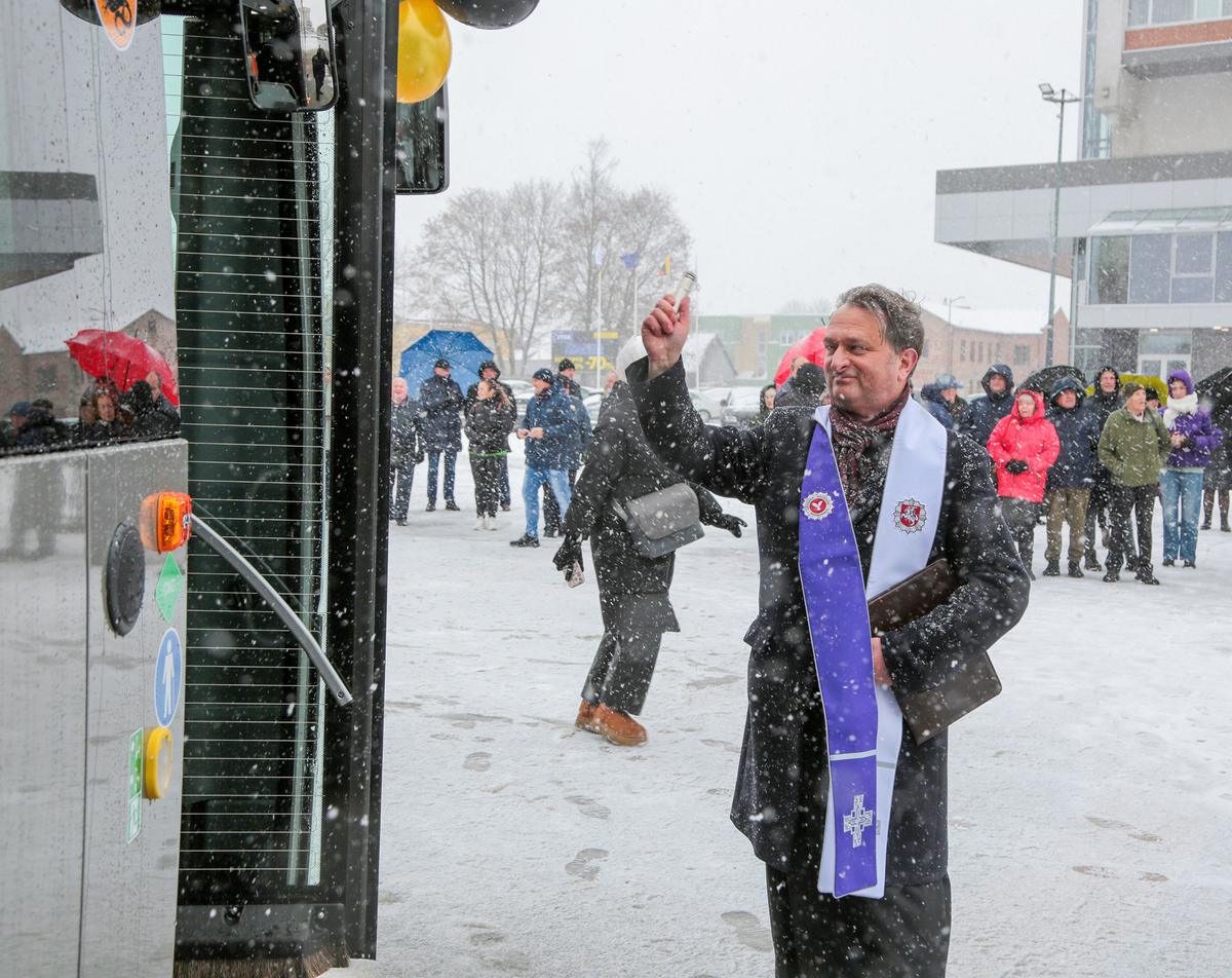 Marijampolės savivaldybės meras Povilas Isoda, sveikindamas į šventę susirinkusius svečius ir vietos gyventojus, juokavo, kad trečiadienio oras išbandys naujas transporto priemones ekstremaliai. Jeigu autobusai per sniegą ir pustant sėkmingai važiuos, tai nebus jokių problemų ir ateityje. „Noriu nuoširdžiai pasveikinti visus Marijampolės savivaldybės gyventojus, kurie naudosis šiais autobusais, ypač kaimiškų vietovių, nes autobusai skirti būtent jų poreikiams. Priemiesčio gyventojai daugiausia važinėja visuomeniniu transportu.