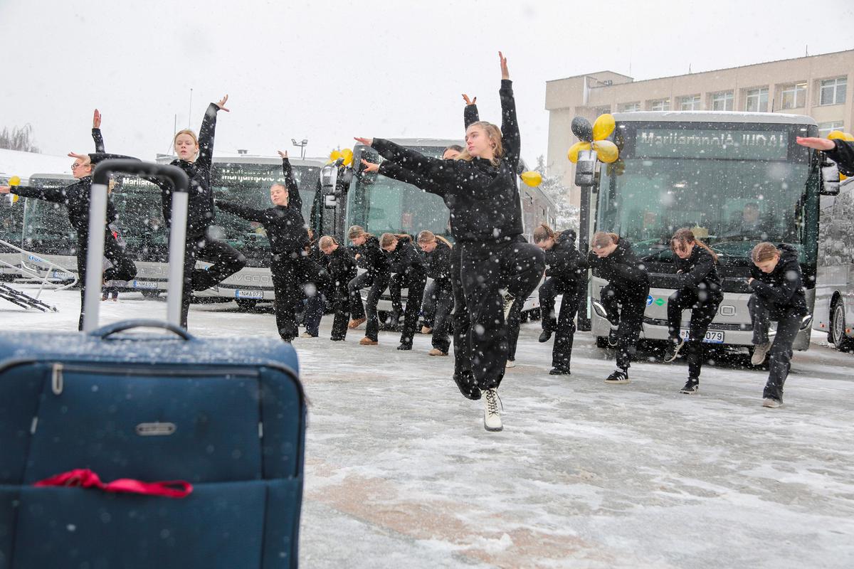 Snieguotą ir žvarbią dieną susirinkusius šildė šokių grupė ,,Arabeskas“.
